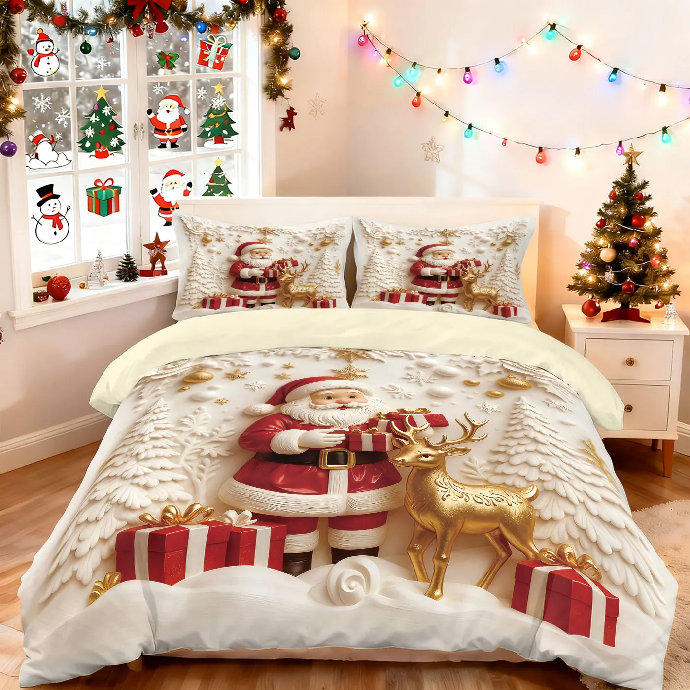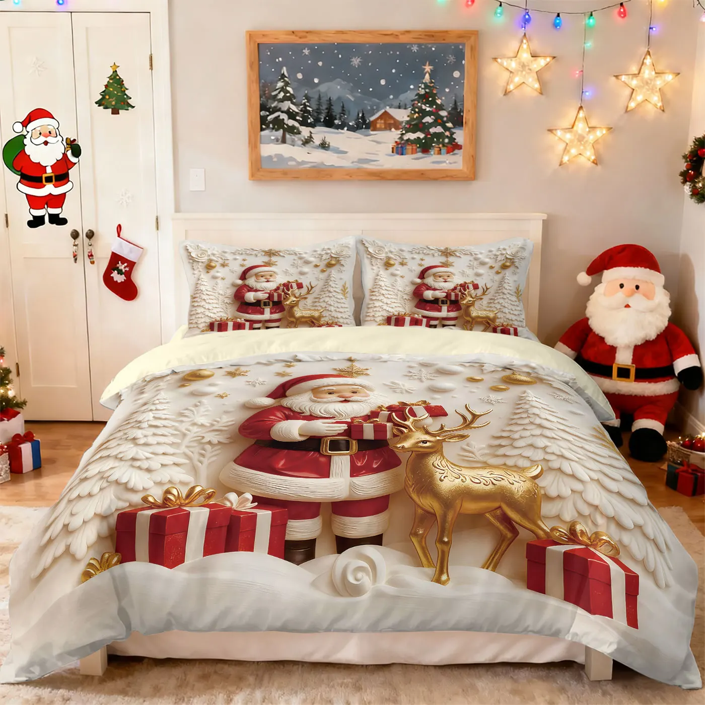 3pcs Merry Christmas Snowman Printed Chipless Bedding Set